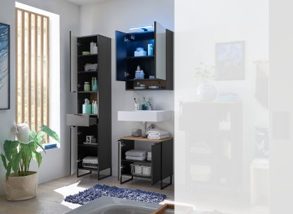 - 1x Hochschrank, 2 -Softclose-Türen, 3 Einlegeböden, 1 offenes Fach, 1Schubkasten, B/H/T: ca. 38/195/32 cm
