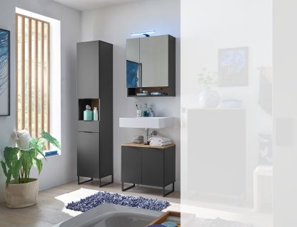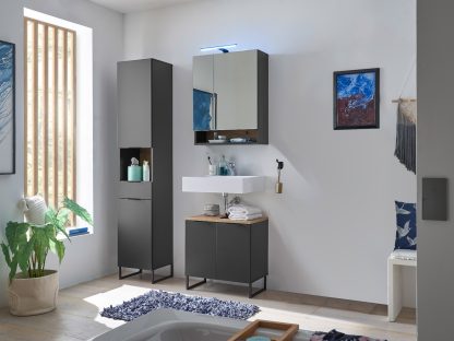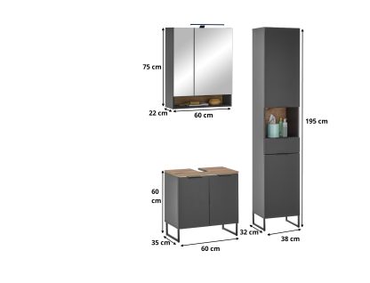 - 1x Waschbeckenunterschrank (B/H/T: 60/60/35 cm), 2 Softclose-Türen, mit Siphonausschnitt