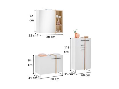 - 1x Waschbeckenunterschrank, 2 Türen, 1 Einlegeboden, B/H/T: 80/64/41 cm