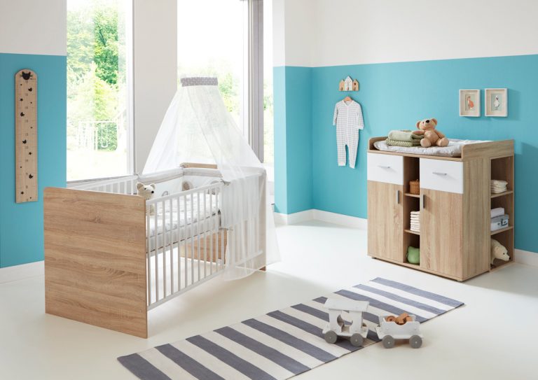 Babyzimmer ELISA 6 in Eiche Sonoma / weiß matt bestehend aus: Babymöbel-Set Maxim